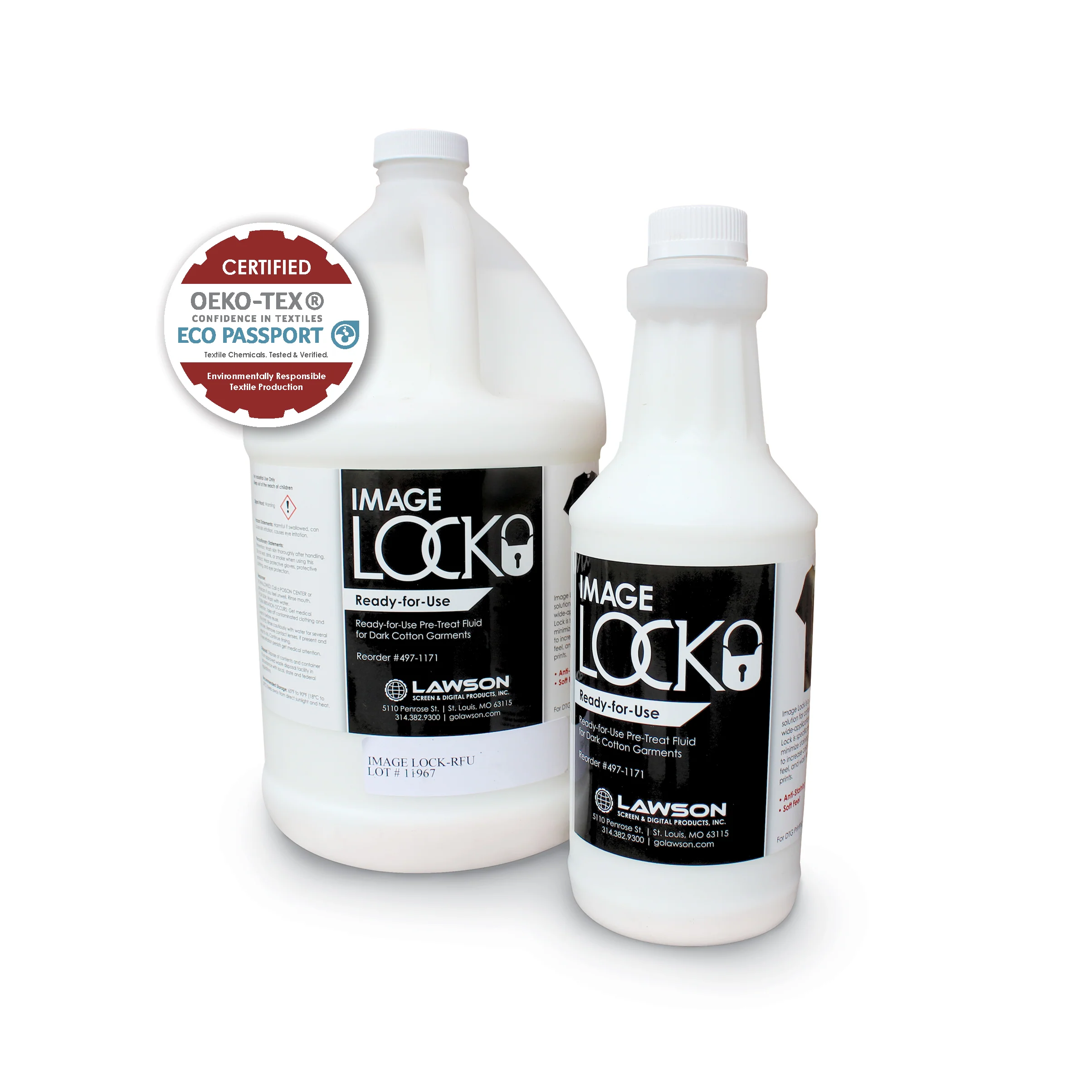 Lawson Image Lock Ready-for-Use (RFU) Pre-Treatment Solution is favored by industry leaders for its minimal staining, soft hand feel, excellent wash fastness, and vibrant color brilliance in direct-to-garment (DTG) printing, particularly with Epson printers.